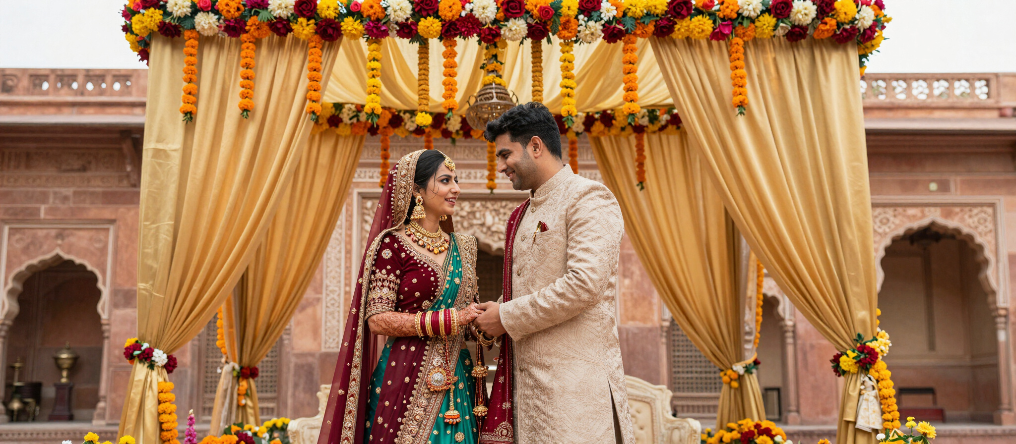 We’ve photographed destination weddings across places like Goa, Kerala, Coorg, Udaipur, Pushkar, and Shimla — and beyond. Bangalore couples often choose Rajasthan, and we’ve spent considerable time working in Udaipur, Jodhpur, and Jaisalmer. The winter light in Rajasthan, in particular, brings a softness and depth that’s unlike anywhere else in India.